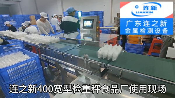 廣東連之新自動重量選別機現場使用圖片,重量超輕或超重都能自動選擇剔除。